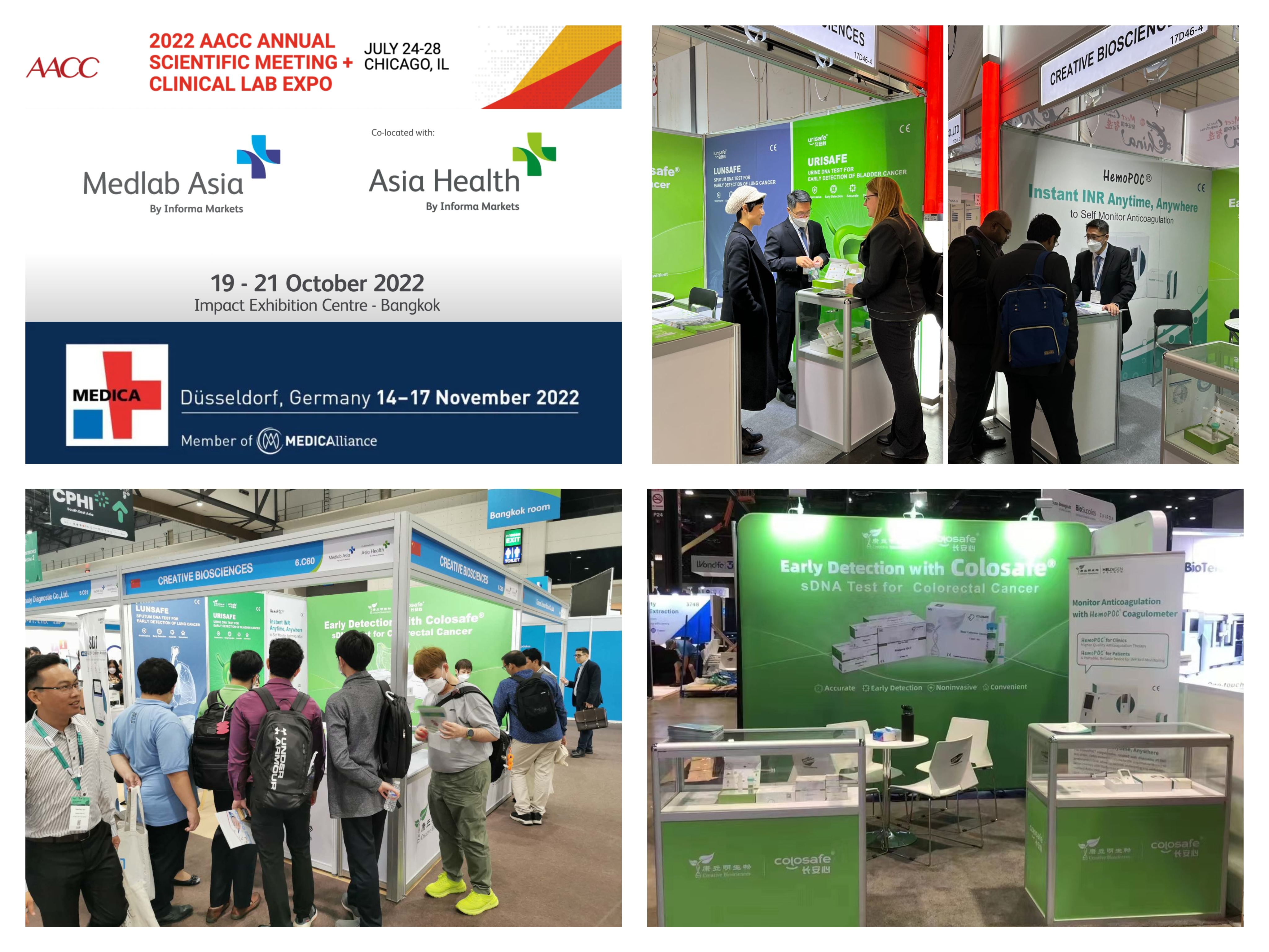 2022年,康立明生物積極拓展海外市場(chǎng),持續(xù)發(fā)力,陸續(xù)參加了7月美國芝加哥的第74屆美國臨床化學(xué)年會(huì)暨臨床實(shí)驗(yàn)醫(yī)學(xué)博覽會(huì)(AACC Annual Meeting and Clinical Lab Expo)、10月泰國曼谷的Medlab亞洲和亞洲健康 2022 (Medlab Asia & Asia Health 2022)、11月德國杜塞爾多夫的2022年國際醫(yī)院及醫(yī)療設(shè)備用品展覽會(huì)(MEDICA 2022)等國際知名的醫(yī)療行業(yè)盛會(huì)。