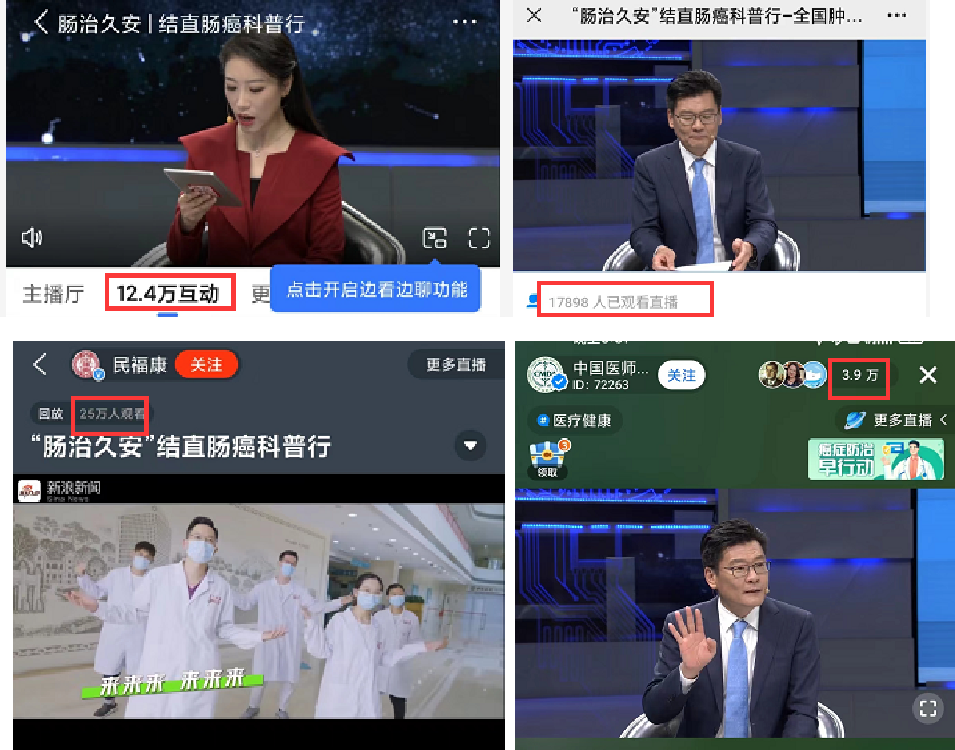 2022年4月15日至21日是第28個(gè)全國腫瘤防治宣傳周,康立明生物聯(lián)合結(jié)直腸領(lǐng)域38名各級(jí)專家大咖,通過線上直播、錄制公益視頻、媒體宣傳等形式,多維度、全面立體向公眾傳播結(jié)直腸癌防治知識(shí),提升大眾腸癌早期檢測(cè)意識(shí)。媒體報(bào)道50篇次,科普直播7場(chǎng),直播平臺(tái)近20家,各大平臺(tái)觀看量近252萬人次,取得良好宣傳效果。