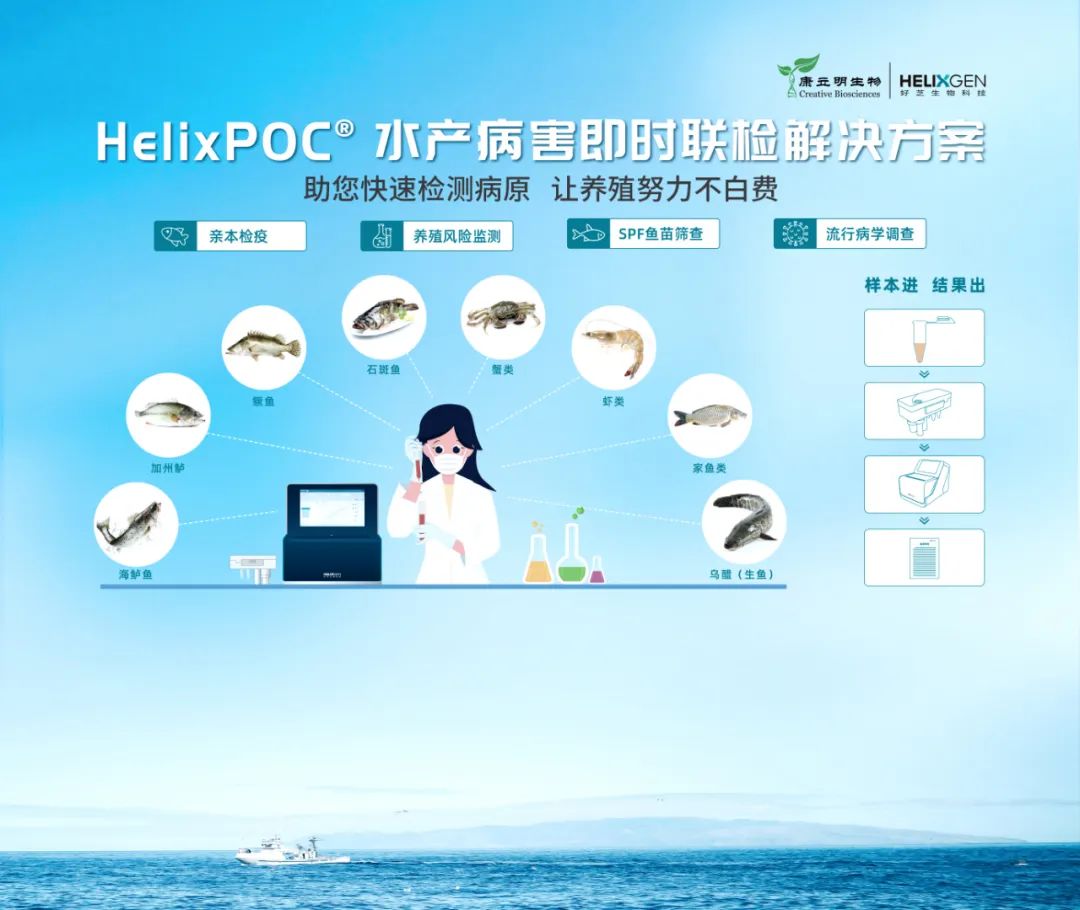 好芝生物以水產(chǎn)養(yǎng)殖病害防治為切入點(diǎn),以養(yǎng)殖物種為檢測(cè)服務(wù)單元,提出水產(chǎn)病害即時(shí)聯(lián)檢解決方案。產(chǎn)品基于HelixPOC®全自動(dòng)微流控核酸檢測(cè)一體機(jī)、水產(chǎn)病害核酸檢測(cè)試劑盒,針對(duì)水產(chǎn)不同細(xì)分種類的病害,實(shí)現(xiàn)樣本進(jìn)、結(jié)果出的全自動(dòng)化流程,無(wú)需專業(yè)操作人員及實(shí)驗(yàn)室,滿足現(xiàn)場(chǎng)快速需求,面向規(guī)模化、集約化的水產(chǎn)養(yǎng)殖基地、種苗基地、水產(chǎn)檢測(cè)中心等場(chǎng)景。檢測(cè)水產(chǎn)養(yǎng)殖物種涵蓋南美白對(duì)蝦、羅氏沼蝦、克氏原螯蝦、小龍蝦、青蟹、鱖魚、加州鱸、海鱸魚、石斑魚、金鯧魚、草魚、烏鱧、鯽魚等 。